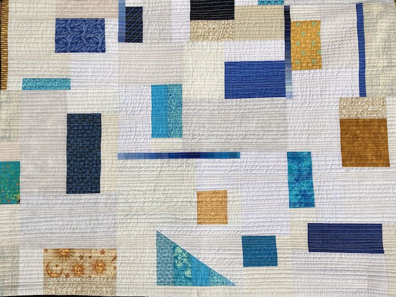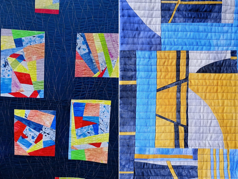 The resulting quilts are bold, vibrant and show the use of asymmetry, improvisational and minimalist styles, with a clever use of negative spaces.