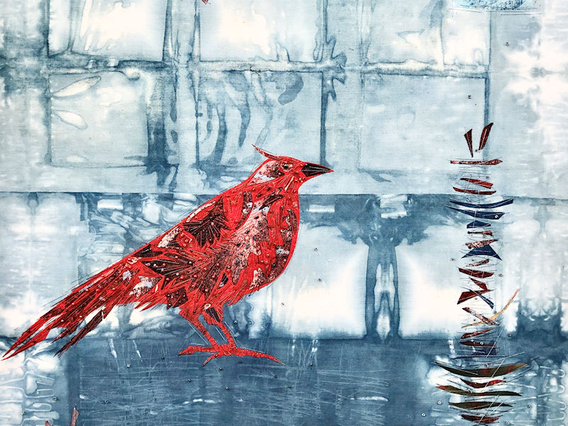 Stephanie chose the Bowerbird as her creative influence as it neatly describes her artistic method of working, collecting ideas and materials from a wide range of sources to produce beautiful textile art.